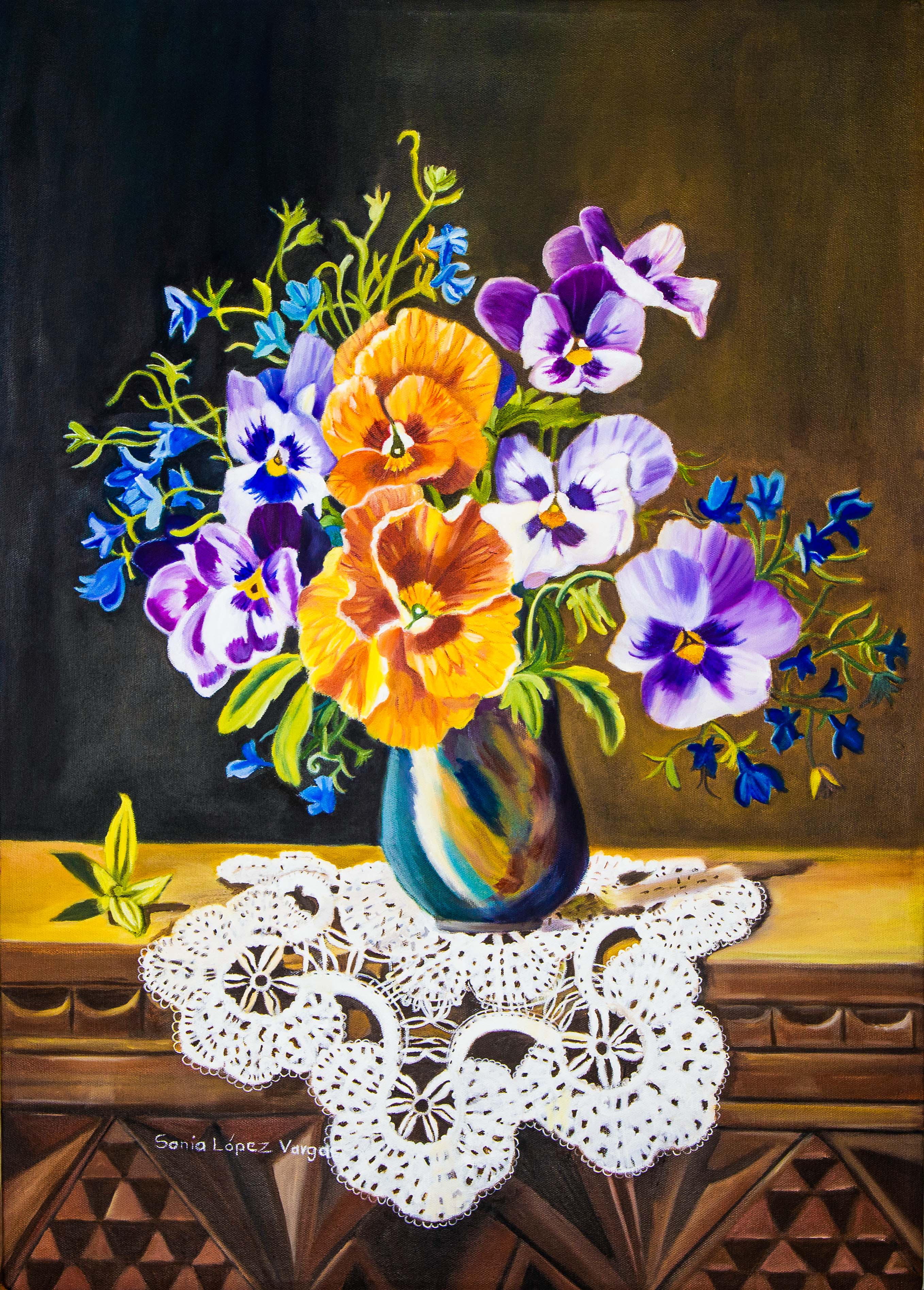 "Cada pincelada de mis pinturas de flores es un eco de mi alma, capturando momentos únicos y preciosos de mi vida. Son más que simples obras de arte; son testigos de mi crecimiento, mis alegrías y mis sueños. En cada trazo, encuentro la fuerza para seguir adelante y la belleza que ilumina mi camino como artista. Son el reflejo de mi pasión y la manifestación de mi amor por la vida."