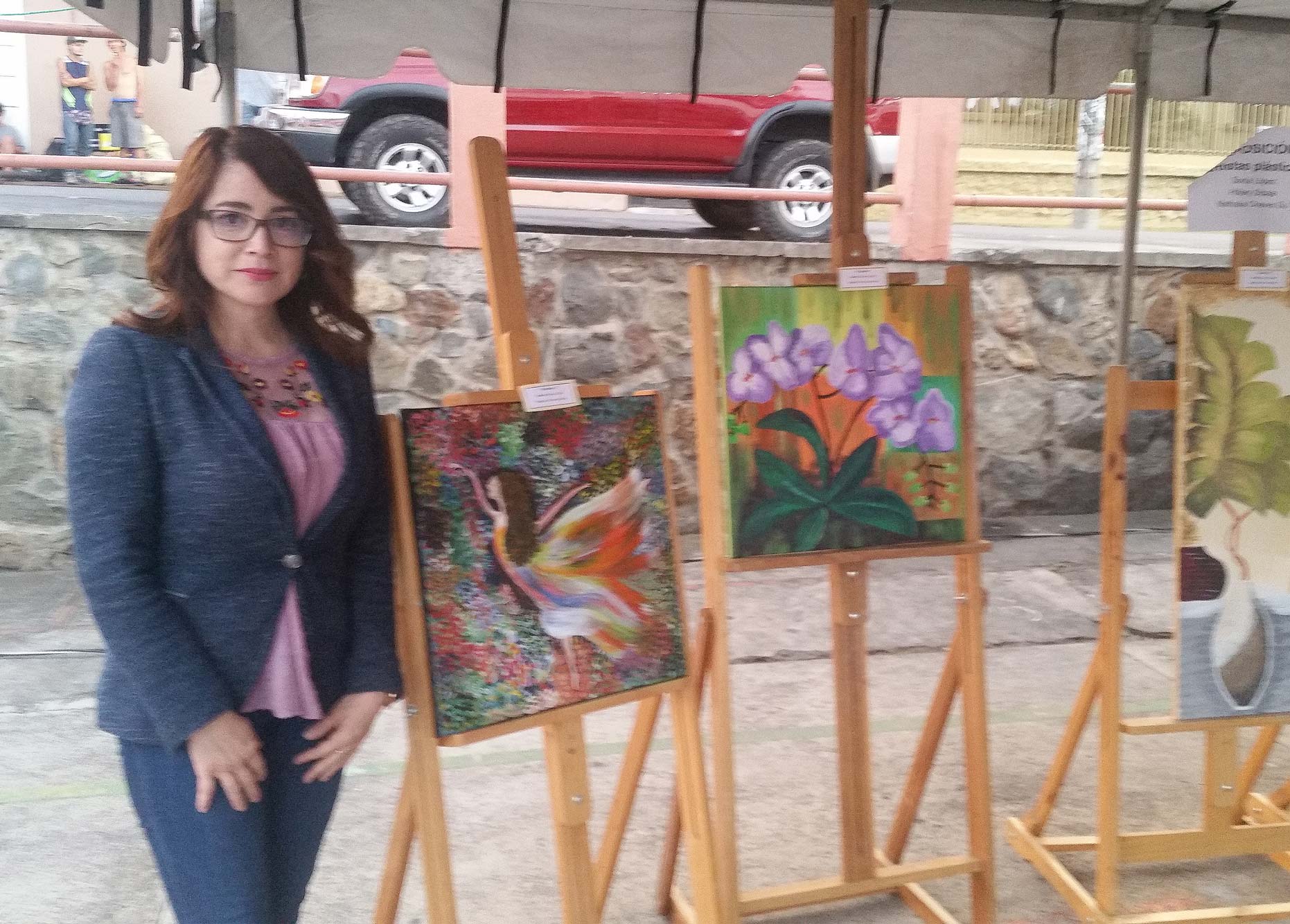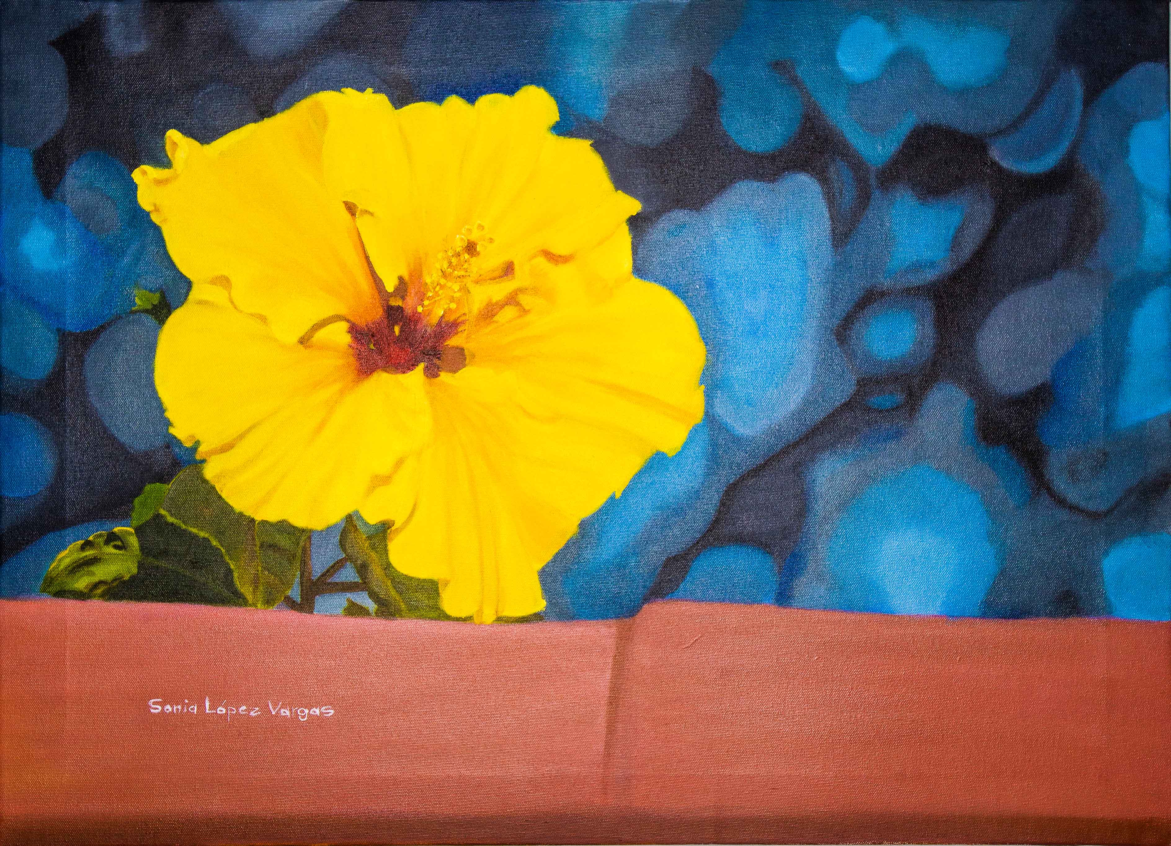 Para presentarles mi obra primero debo hablarles un poco de mí, crecí en San Vito de Coto Brus, pero el cáncer de mi madre me trajo a San José en 1992, este cambio fue un contraste enorme del entorno en el cual viví y crecí, de súbito cambié el campo, los animales y la finca por la cuidad. Por varios meses cuidé de mi madre, sin embargo, el cáncer ganó la batalla y yo quedé en la cuidad con mis hermanos y una vida que recomenzar. Poco después de la partida de mi madre conocí a quien hoy es mi esposo y lo ha sido por casi 30 años, con él he construido una hermosa familia con 2 maravillosos hijos. Soy una mujer que creció en el campo rodeada de naturaleza y eso fue algo que por siempre me ha marcado, que ha influido poderosamente en mi perspectiva artística; la naturaleza tiene un particular lugar en mi vida y eso lo he plasmado así en estas obras. Pero también soy una mujer que se ha desarrollado en la vida urbana, que ha perseguido siempre sus sueños y que aún lo sigue haciendo.