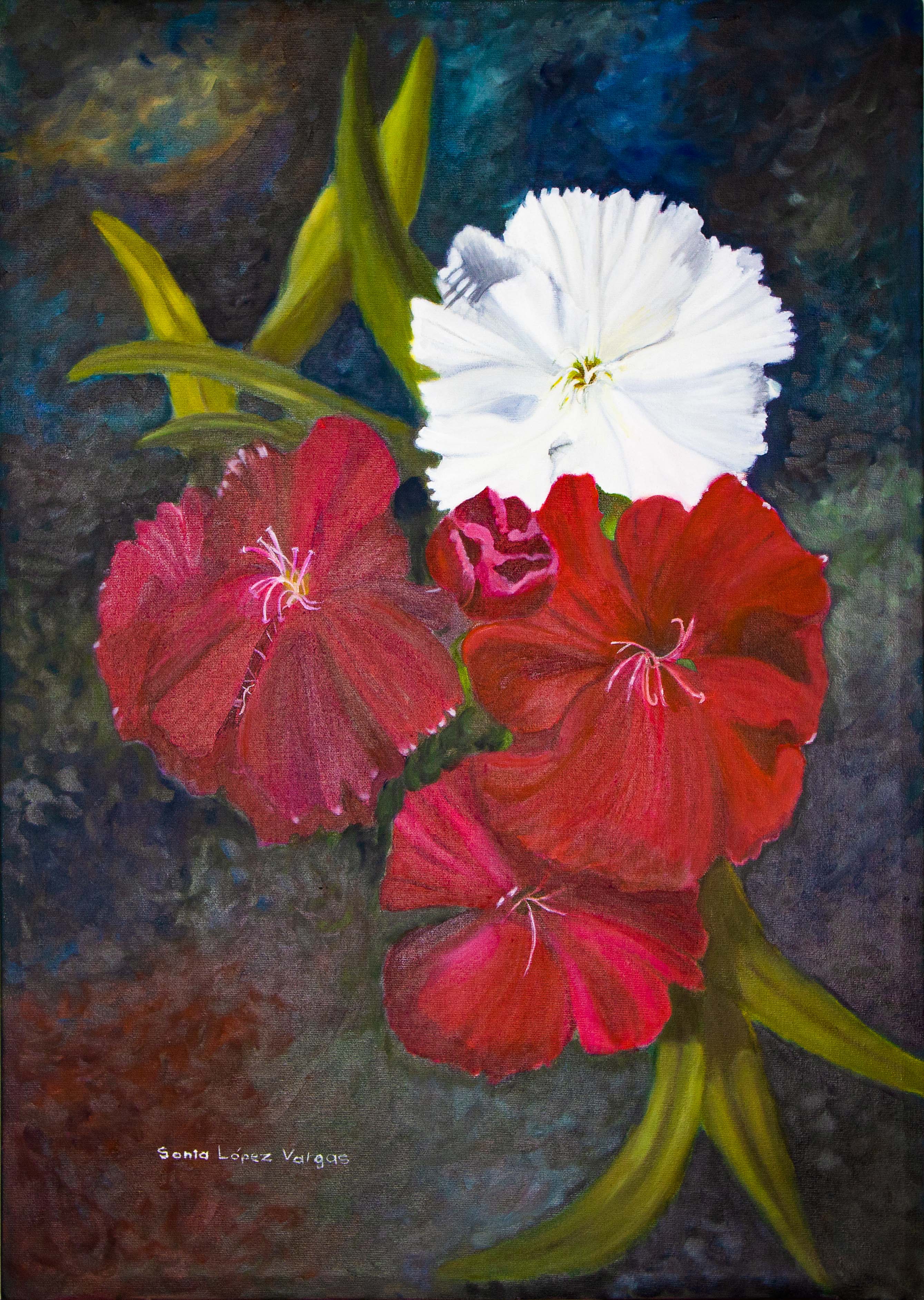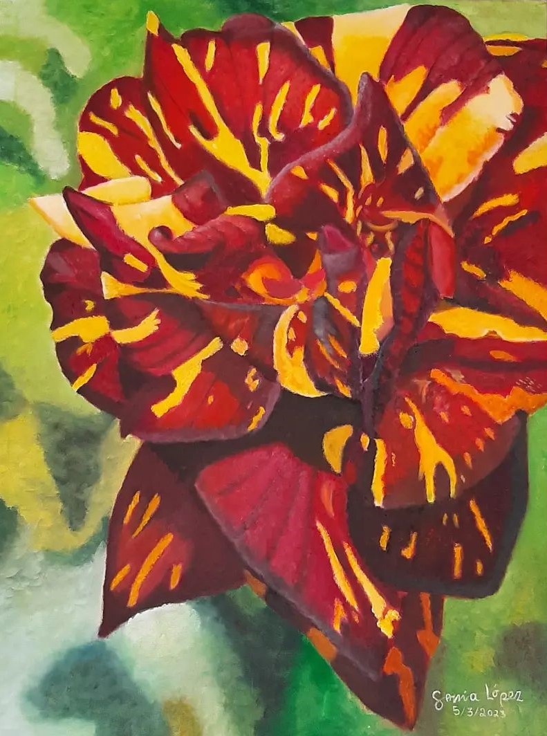 "Cada pincelada de mis pinturas de flores es un eco de mi alma, capturando momentos únicos y preciosos de mi vida. Son más que simples obras de arte; son testigos de mi crecimiento, mis alegrías y mis sueños. En cada trazo, encuentro la fuerza para seguir adelante y la belleza que ilumina mi camino como artista. Son el reflejo de mi pasión y la manifestación de mi amor por la vida."